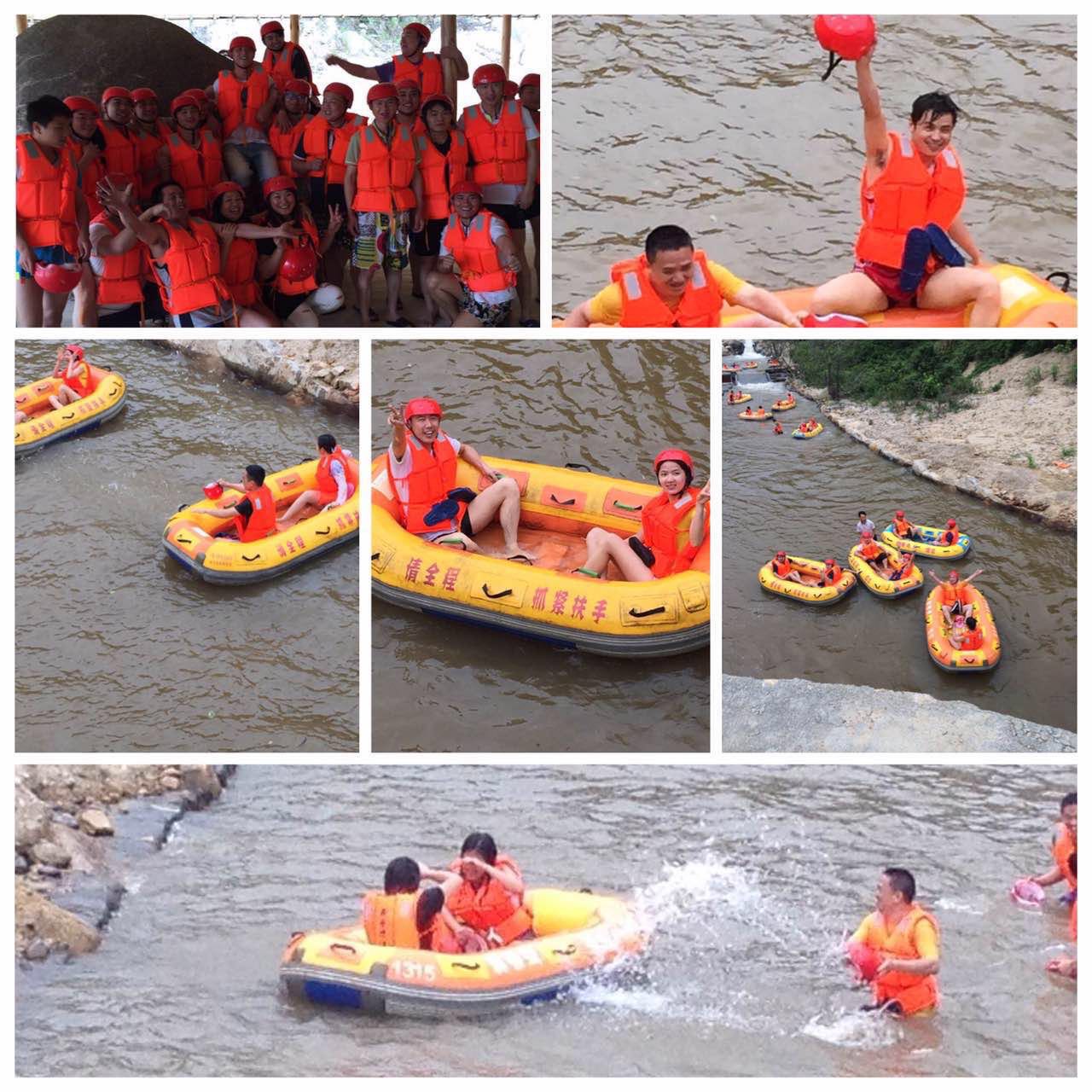 中午大家在一起享受了一番當?shù)孛朗持螅屲噥淼搅速沐紴除堯v峽漂流,開始了我們的第二項挑戰(zhàn)。盡情享受漂流給心靈帶來歡愉與刺激的同時,享受大自然的鬼斧神工之妙!平時一向溫和的李總和林總,也童真了回,孩子氣地直接從漂流艇上跳入水中,和大伙一起玩起了潑水大戰(zhàn),更加拉進了彼此間的距離感。